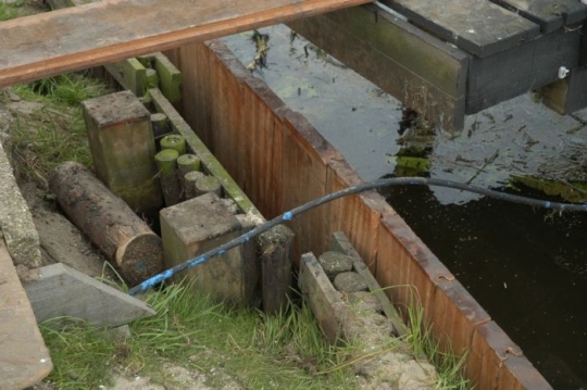 afkalven tegengaan door beschoeiing (naast de nieuwe beschoeiing is hier (nog) de oude te zien; simav) ![]() |