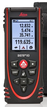 de geavanceerde leica disto x3; blutooth; meetfuncties min/max meting, afstandmeting, continue meting, uitzetten functie, optellen/aftrekken, oppervlakte/volume, schildersfunctie, smart horizontal mode, hoogtemeting, ruimtehoek, pythagoras 3 punts meting; "stof- en waterdichte (ip65) laser afstandsmeter met hoekmeting, bereik 0,05 tot 150 meter, nauwkeurigheid ± 1 mm, roteerbaar display" (checkline): ![]() |