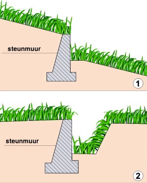 Soms hebben aha's toch een vanuit het landhuis niet zichtbare sloot, achter de steunmuur, maar normaliter is een aha niet bevaarbaar.