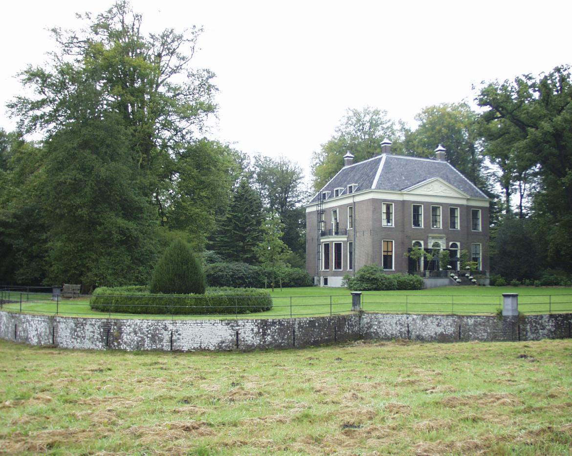 één van de doelen van de aha: wild en vee buiten eigen terrein houden; rechts is het landhuis: ![]() |