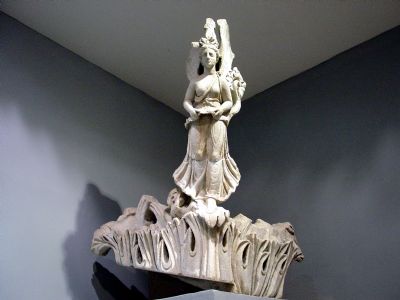 akroterion als beeldhouwwerk en voetstuk, totaal ongeveer 1 m hoog, het beeldje lijkt op nike de godin van de overwinning met vleugels (holy land photos): ![]() |