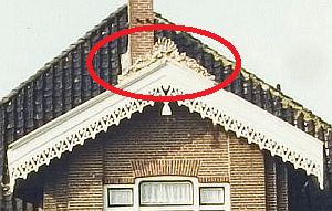 akroterion (acroterie) als kwinkslag op dakvorst of windveer, middenweg 193, middenbeemster, 1873 (boerderijenstichting noord-holland): ![]() |