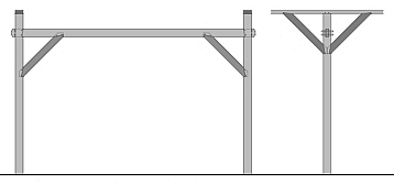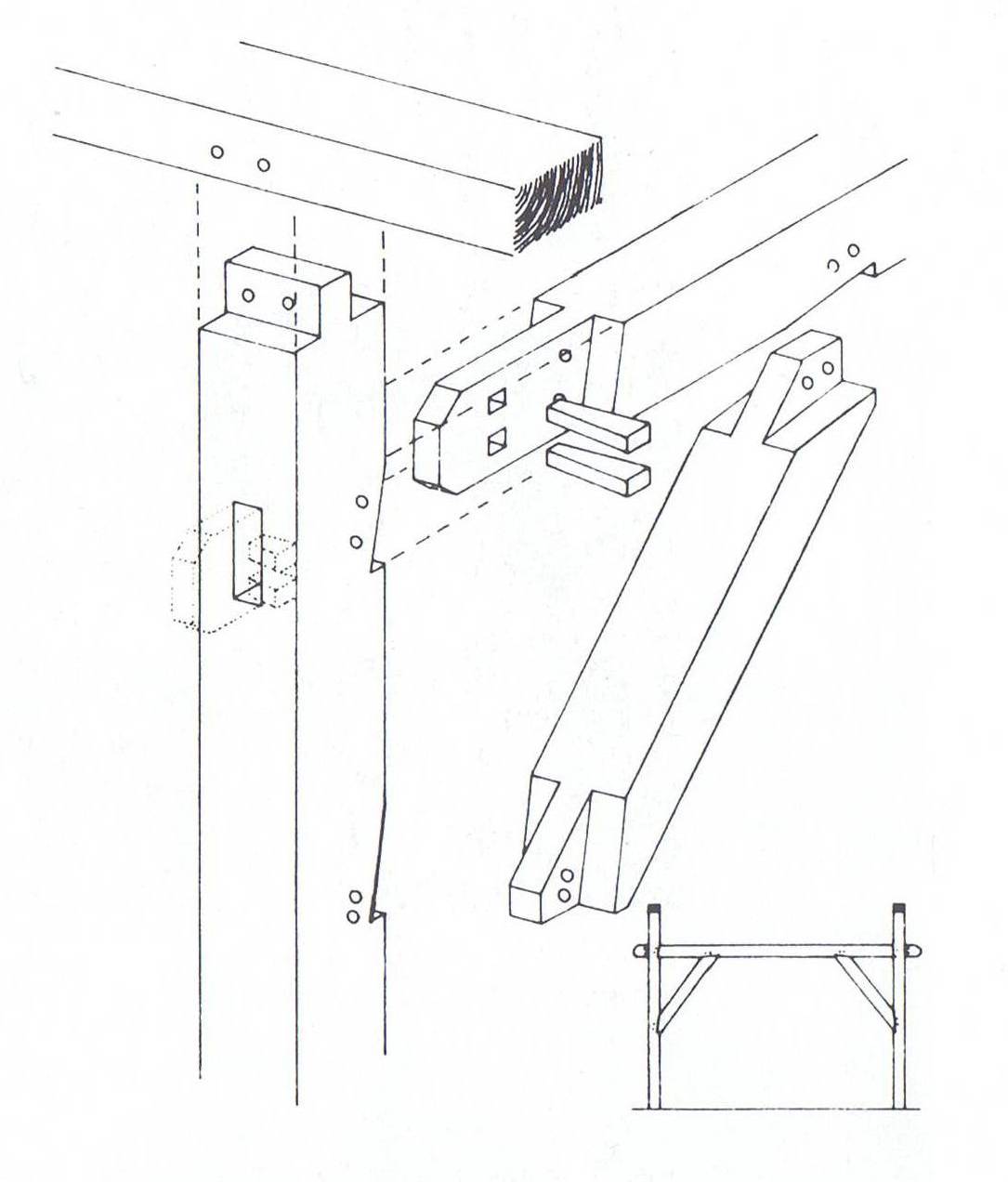 ankerbalkgebinten bovenaan verbindt met pen-en-gat) wordt meestal per stijl gesteund door