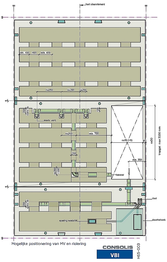 voorbeeld integraalvloer met mechanische ventilatie en riolering; klik voor groter (vbi): ![]() |