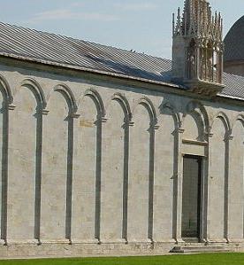 Verg. arcatuur (d.w.z. dwerggalerij), colonnade (reeks zuilen die een hoofdgestel draagt en die niet zoals bij een arcade met bogen verbonden zijn).