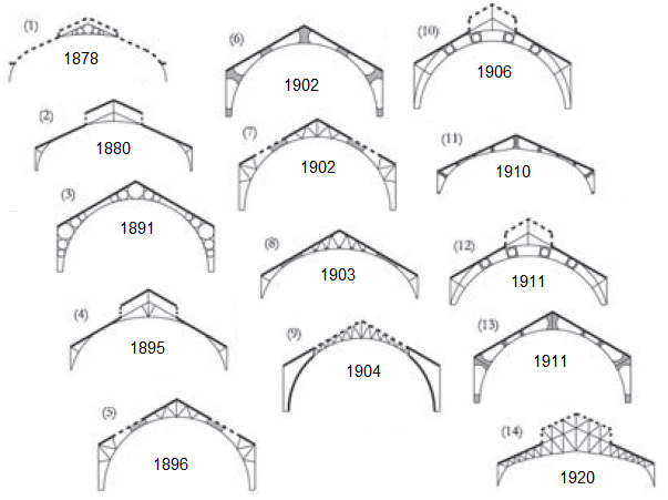 ardant-spanten voor scholen in belgië, van 1878 tot 1920; klik voor groter (uit pdf het ardant-spant, erfgoed brussel): ![]() |