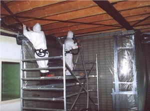 asbest dient verwijderd te worden in speciale pakken en met speciale maskers (wal-sloopwerken): ![]() |