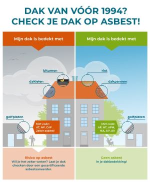 een asbest dak dient vervangen te worden; dakbedekkingen van vóór 1994 kunnen asbest bevatten; wanneer bevat een dak asbest?; klik voor groter! (milieu centraal): ![]() |