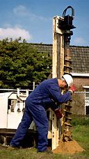 - de avegaar wordt tot de gewenste diepte gedraaid: het resultaat is een paalgat in de grond met de avegaar er nog in