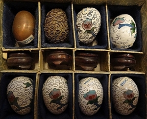 cloisonné, eenzelfde techniek van "ommuren" als die van de azulejo; op de foto worden de stappen getoond bij dit cloisonné-ei (foto joostdevree): ![]() |