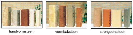 Zie ook handvormsteen, vormbaksteen, leemsteen (ongebakken), strengperssteen, gevelbekledingen, klinker, voeg.