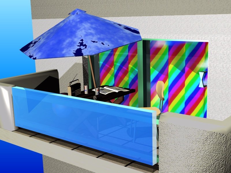 - schaduw van het balkon in de kamer eronder (bij stapelbouw: schaduw van het