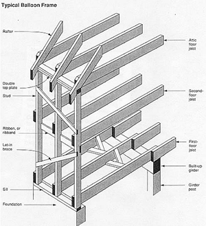 (*)"Balloon frame house are based on a closely spaced two inch boards of varying
