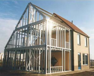 in Noord-Amerika constructies gaan bouwen waarbij een houten framewerk