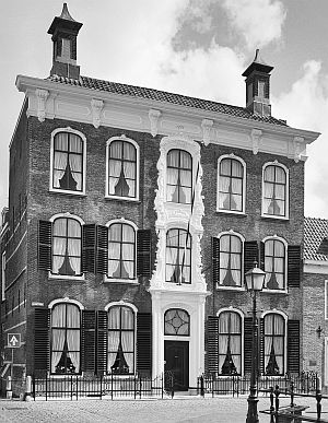 lodewijk xiv stijl met weelderige middenrisaliet, kleine kade 47, goes, bouwjaar 1765 met een deel 16e eeuws muurwerk (foto g.j. dukker, beeldbank cultureel erfgoed document 327532): ![]() |