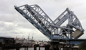 straussbrug, basculebrug met ballast boven het wegdek, johnson street bridge, victoria (foto cacohony, wikipedia): ![]() |
