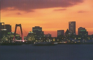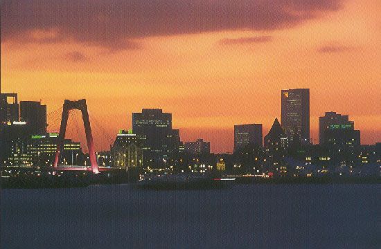 met Skyline van stedelijk Rotterdam, geeft een duidelijk voorbeeld van stedelijk gebied.