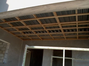 op een muur, dakbeschot of plafond o.d. om er een ander materiaal op te kunnen