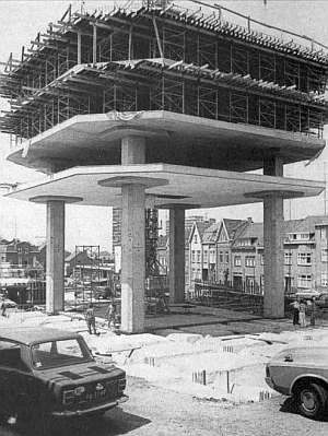 eerst bij een appartementengebouw gewapend beton toepaste en betonnen kolommen,