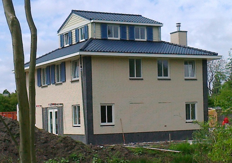 drie blind gemaakte vensters (2 op begane grond, 1 op 1e verdieping); wellicht omdat pas zeer laat in het bouwtraject de vensters niet meer gewenst waren (of omdat het een cataloguswoning kan zijn en aanpassen op deze manier het gemakkelijkst is); overigens een wonderlijke "dakkapel"; klik voor groter (foto joostdevree): ![]() |