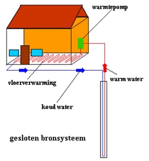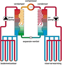 schematische schets van de bodemwarmtewisselaar, warmtepomp en vloerverwarming (duurzaamthuis):![]() |