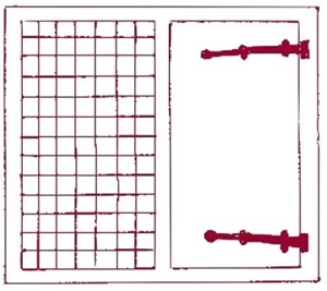 bolkozijn, oorspronkelijke betekenis met een deel glas (glazen ruitjes) en een open deel dat met een luik gesloten kan worden (onroerend erfgoed): ![]() |