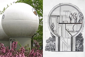 en met subsidie in 1984 gebouwd als experiment. "De witte bol heeft een doorsnede van