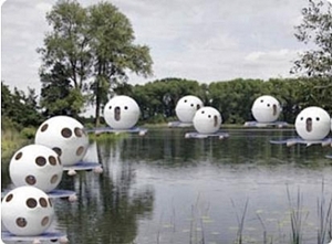 impressie van de kunststof woonbol, drijvend op het water (dries kreijkamp ontwerp- en adviesbureau): ![]() |