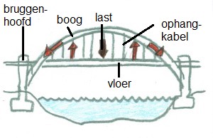alle varianten brengt de boog de krachten over naar de bruggenhoofden