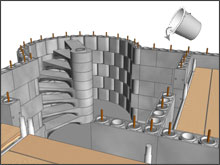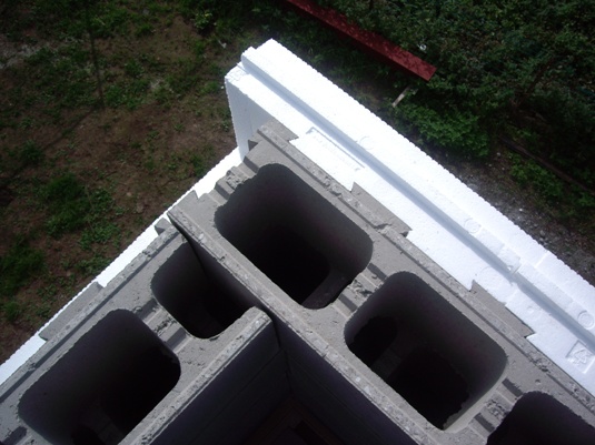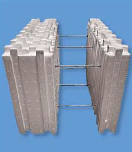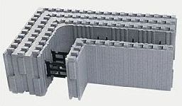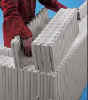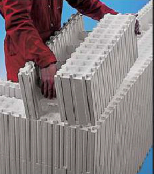 polystyreen (bijv. Neopor): vullen met wapeningsstaal en beton ("lego-systeem") | |
