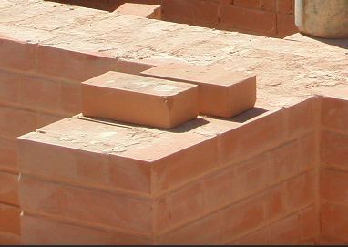 bloksteen ("Quaderstein", quadersteen): volkomen passend op elkaar gestapeld houden druk en wrijvingskracht de muur bijeen, zoals bij een Romeins aquaduct | |