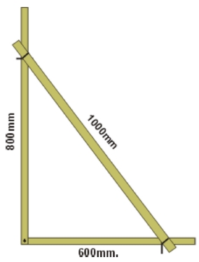 Eng. (omschrijving) large try square made on-site from three battens forming a triangle