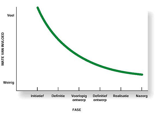bouwproces, mate van invloed in de diverse bouwfasen; klik voor groter (rvo): |