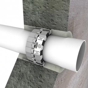 een brandmanchet om te vermijden dat de brand zich via de kunststof leiding voortplant; bij hitte zet een speciaal materiaal aan de binnenzijde van de manchet fors uit en sluit de verbinding af (brochure promastop u, van promat): ![]() |