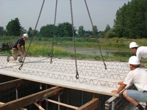 polyplaatvloer waarbij de ruimte van een deel van het op te storten beton wordt ingenomen door polystyreen (van nieuwpoort prefab beton) : ![]() |