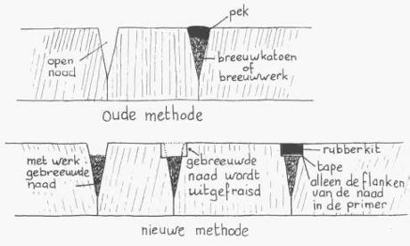 De naad wordt eerst opgevuld met breeuwwerk (harpluis) en een