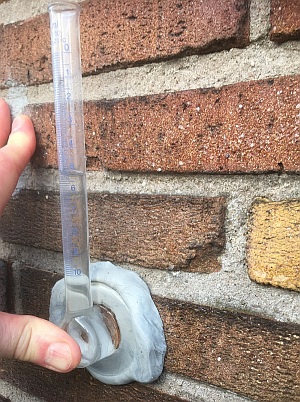 - de Karstenpijp wordt op het testoppervlak gekleefd met speciaal daartoe bestemde butylkoord (een soort kleefklei)