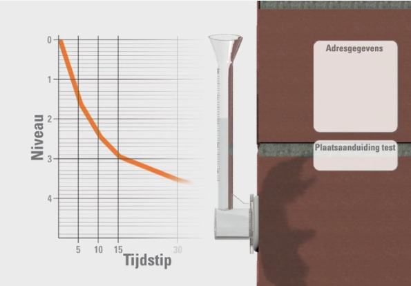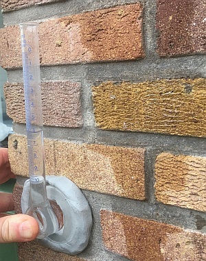 - de test vindt plaats op een paar locaties op het metselwerk en bij voorkeur met droog weer (vochtig metselwerk kan mogelijk minder water opnemen of juist meer door de waterzuigende werking van het vocht in het metselwerk)