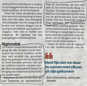 Een stukje uit de krant, van een woordvoerder van de gemeente Utrecht: "De gemeente gebruikt de ruimte van geparkeerde auto's liever anders. Bijvoorbeeld voor meer ruimte voor fietsen, wandelen of groen. (...) Er zijn andere opties voor parkeren op straat, zoals een betaalbaar parkeerabonnement in een P+R of in een parkeergarage. Of maak gebruik van de verschillende vormen van deelvervoer, het openbaar vervoer, pak de fiets of wandel".