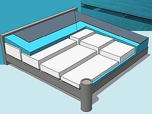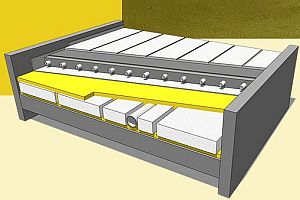 voorbeeld van de plaats van c-eps bij een dak met afschot (blauwe deel) en een vloer met vloerverwarming (gele deel) (isomix): ![]() |
