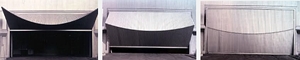 1998-2001: bodegas ysios, laguardia, spanje, de (vereiste) langgerekte vorm heeft een enorm golvend dak van met afzonderlijke langwerpige blokken, het uitkragende dak fungeert over de gehele breedte als luifel (luifeldak), de "massieve" luifels drukken kracht uit, de dakelementen zijn van multiplex met aluminium bekleed: ![]() ![]() |