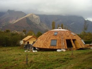 met de zon meedraaiend huisje in de vorm van een calotte, een soort iglo (le chalet tournesol, au-delà des nuages): ![]() |