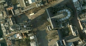 v.l.n.r. campanile toren van pisa, kathedraal (duomo), het baptisterium (met hoge koepel) en rechts stukje van composante (de ommuurde begraafplaats) (foto ongeveer vanuit het noordoosten; foto bob tubbs, wikipedia): ![]() |