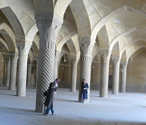 de cannelures en banden lopen spiraalsgewijs bij de shiraz regents moskee, iran (foto frank blankers): ![]() |