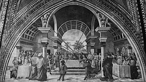 centraal perspectief bij het schilderij "het banket van herodes" van domenico ghirlandaio, 1490; alle zichtlijnen zijn gericht op de persoon in het midden; klik voor groter: ![]() |