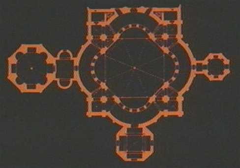 - de samenhang en gelijkheid benadrukken tussen gebouwdelen rond het midden