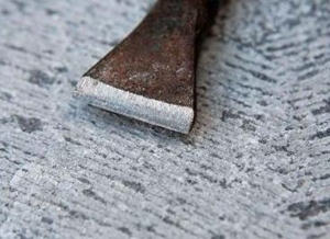 beitel geslagen waardoor bijvoorbeeld groeven in steen zijn te maken, zoals bij