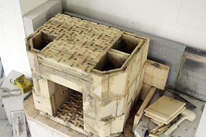 Afbeeldingen o.m. Creativ Ofenstudio, AKM-Öfen en Traditional Oven. Eng. refractory brick, fireclay brick (chamotte is grog, chamotte, firesand; chamotteklei is refractory clay, fireclay)