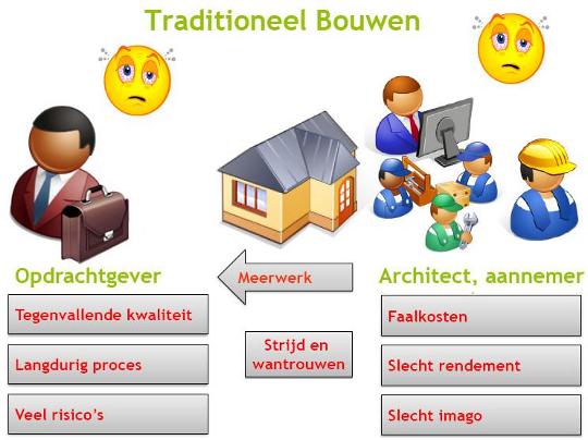 - er dient gebruik gemaakt te worden van dezelfde bouwpartners vanwege het wederzijds vertrouwen en de resultaatverantwoordelijkheid (resultaatverplichting ipv. prestatieverplichting)