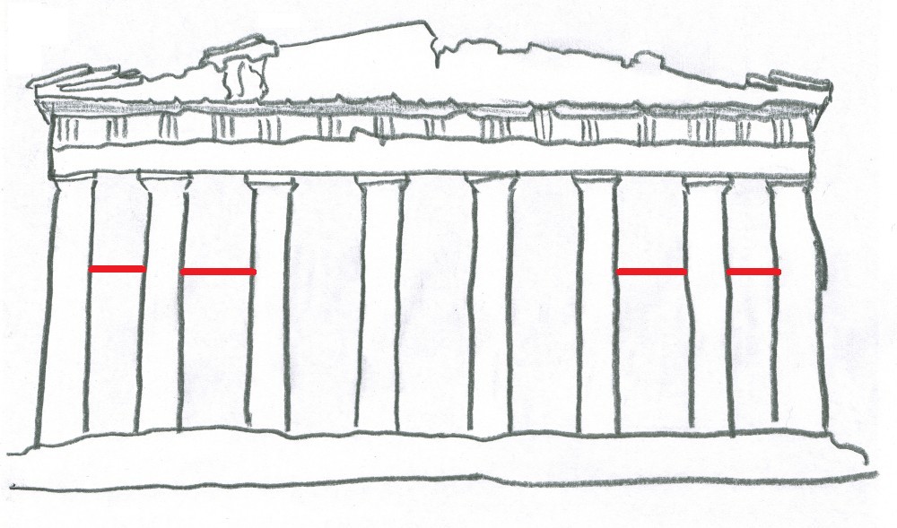 duidelijke contractie bij het parthenon (tekening naar een foto); klik voor groter: ![]() |